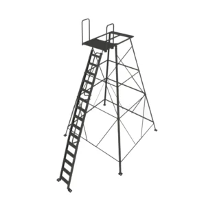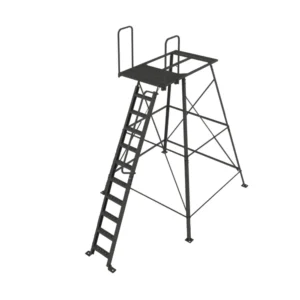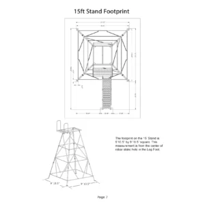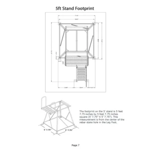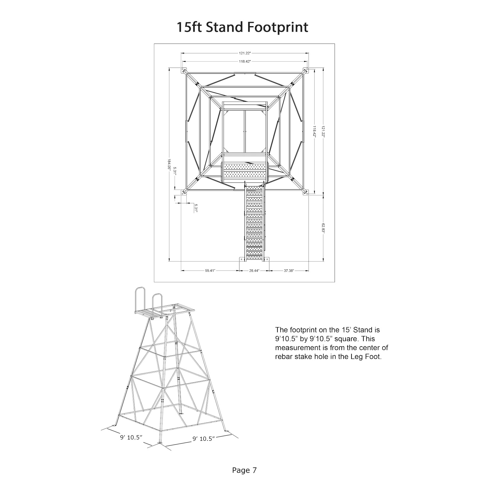 - For the 15ft Tower Stand with Porch Extension: 630 lbs with a footprint of 9’10.5″ x 9’10.5″ square