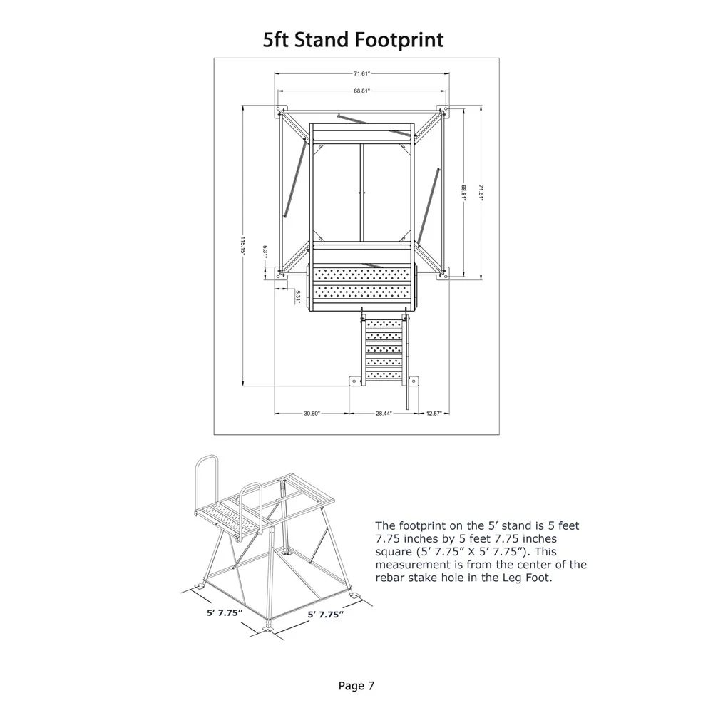 - For the 5ft Tower Stand with Porch Extension: 315 lbs with a footprint of 5’10” x 5’10” square