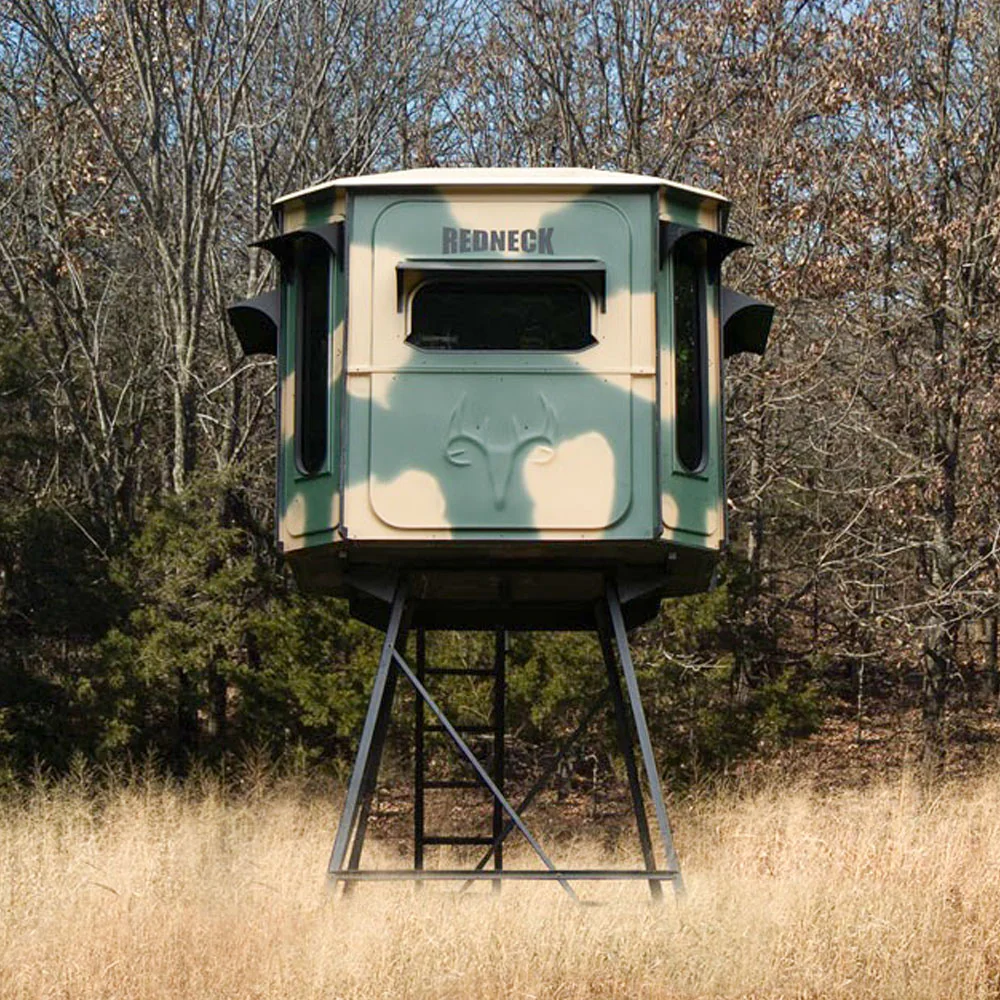 - 6×7 Box Blind on 15ft Stand with Porch Extension & Support Bracket